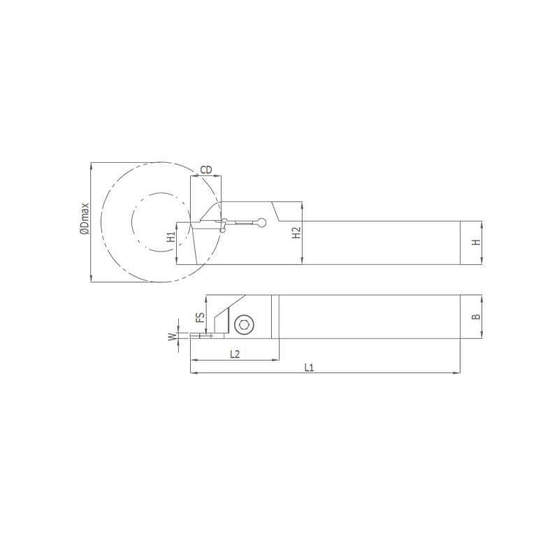 | DGN ISCR | R | L | Dmax | W | H | B | FS | L1 | L2 | H1 | H2 | CD | Elmas Uç | Vida | Allen Anahtarı |